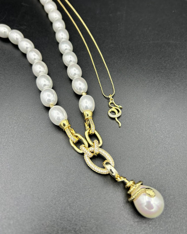 Náhrdelník so SHELL perlou... Cena 98,00 € náhrdelník oval shell perly 10-12 mm / možnosť nosiť aj bez prívesku prívesok shell perla slza s pozláteným hadom 18 ct /odnímateľný... Nakupuj