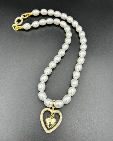 Perlový náhrdelník s... Cena 98,00 € náhrdelník oval shell perly 10-12 mm/možnosť nosiť aj bez prívesku prívesok pozlátené veľké srdce 18 ct s kubickými zirkónmi/odnímateľný... Nakupuj