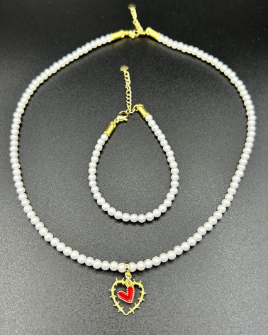 Perlový náhrdelník s... Cena 77,00 € malé shell perly matný satén prívesok pozlátené tŕňové srdce prívesok červené srdiečko pozlátené komponenty Nakupuj