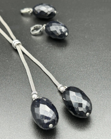 Dlhý náhrdelník kyanid Cena 66,00 € brúsené korálky minerálu kyanid nerezová retiazka so stoperom Nakupuj