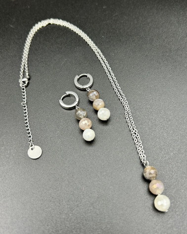 Náušnice luna trio mesačný... Cena 36,00 € korálky mesačný kameň brúsený 6 mm náušnice chirurgická oceľ farba strieborná Nakupuj