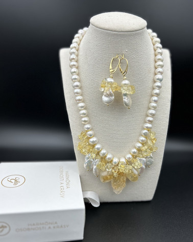 Náhrdelník riečne perly a... Cena 175,00 € Dlhý náhrdelník: pravé prírodné riečne perly 7-8 mm pravá perla baroque 1x 3 prívesky zo surového citrínu zlomky citrínu komponenty... Nakupuj