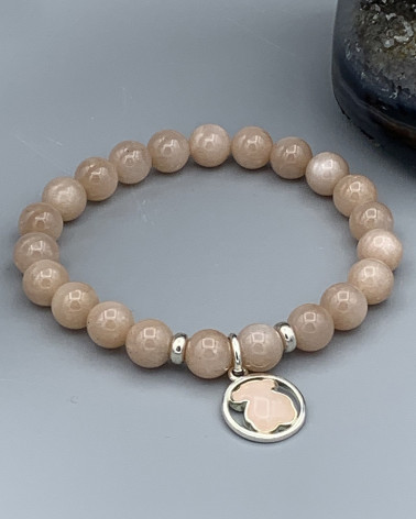Náramok slnečný kameň s... Cena 98,00 € korálky slnečný kameň béžový AA kvalita 8 mm prívesok macko v kruhu značky TOUS striebro Vermeil pomocné korálky striebro Vermeil Nakupuj