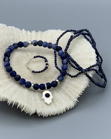 Náramok sodalit s hamsou TOUS Cena 55,00 € korálky sodalit matný 5 mm prívesok hamsa so sodalitom značky TOUS v striebre Vermeil pomocná korálka Ag rondelky Ag Nakupuj
