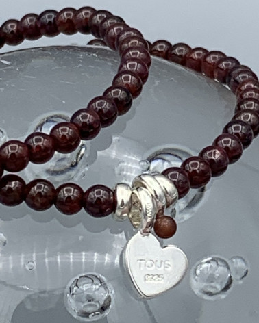 Náramok granát so srdiečkou... Cena 47,00 € korálky pravého granátu 3 mm sada príveskov so srdiečkom značky TOUS Nakupuj