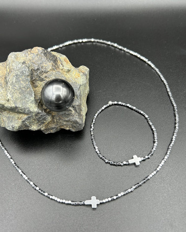Náhrdelník hematit s krížom Cena 48,00 € korálky hematitu mini kocky korálka hematitu krížik dá sa nosiť aj ako náramok (3 obtočenia) Nakupuj