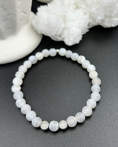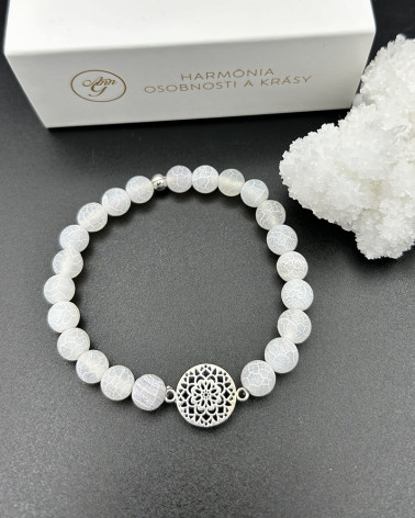 Náramok achát ľadový s... Cena 30,00 € korálky achát ľadový (nazývaný aj dračí) 10 mm stredový diel kvet života nerez Nakupuj