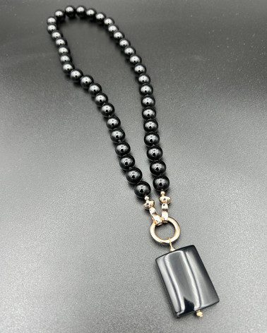 Náhrdelník big ónyx Cena 68,00 € korálky ónyx 6 mm kvalita AA komponenty nehrdzavejúca oceľ rose veľký kameň ónyx Nakupuj