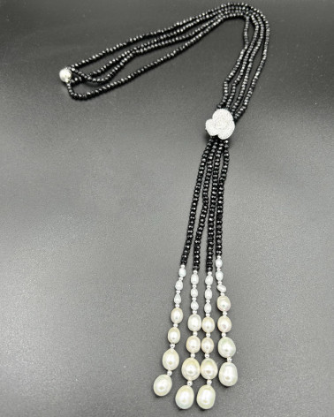Náhrdelník ónyx a perlový... Cena 98,00 € korálky ónyx 6 mm kvalita AA komponenty nehrdzavejúca oceľ rose riečne perly Nakupuj