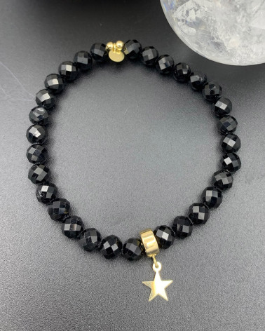 Náramok z ónyxu s veľkou... Cena 180,00 € brúsené korálky ónyx 6 mm prívesok veľká hviezda z 18 ct zlata, malé logo AnnG z 18 ct zlata ďalšie kovové komponenty z 18 ct zlata Nakupuj