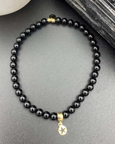 Náramok z ónyxu s malou... Cena 105,00 € korálky ónyx 4 mm A kvalita prívesok malá hviezdnička z 18 ct zlata, malé logo AnnG z 18 ct zlata ďalšie kovové komponenty z 18 ct zlata Nakupuj
