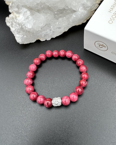 Náramok pineapple magenta... Cena 35,00 € korálky jaspis čerešňový 6 mm medzidiel pineapple so zirkónmi bižutérny kov strieborná farba Nakupuj