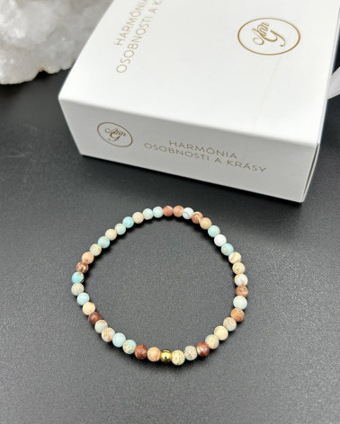Náramok Sardínia jaspis... Cena 23,00 € korálky pravého jaspisu regalit retiazka z chirurgickej ocele zlatá farba Nakupuj