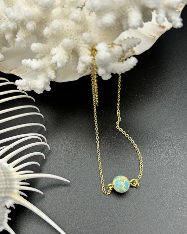 Náramok Malibu sea jaspis aqua Cena 25,00 € retiazka chirurgická oceľ v zlatej farbe medzidiel palma chirurgická oceľ 1 x korálky jaspis aqua brúsené Nakupuj