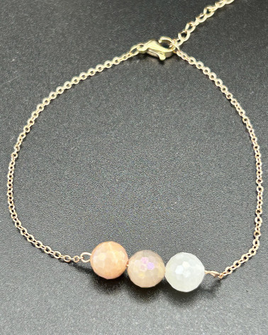 Náramok sun trio slnečný kameň Cena 33,00 € korálky slnečný kameň brúsený 6 mm retiazka chirurgická oceľ farba rose Nakupuj