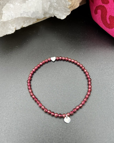 Náramok malinový rubín so... Cena 149,00 € korálky zo syntetického malinového rubínu 6 mm stredový diel stredné srdce z bieleho 14 ct zlata Au logo z bieleho 14 ct zlata Au Nakupuj