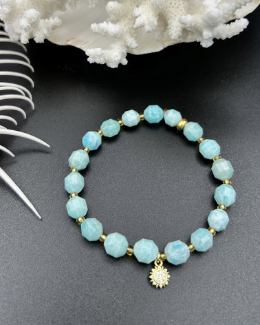 Náramok Sardínia amazonit... Cena 28,00 € korálky amazonit súdok brúsený 8 mm prívesok slniečko so zirkónmi pozlátené predeľovacie sklené korálky Nakupuj