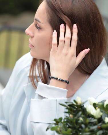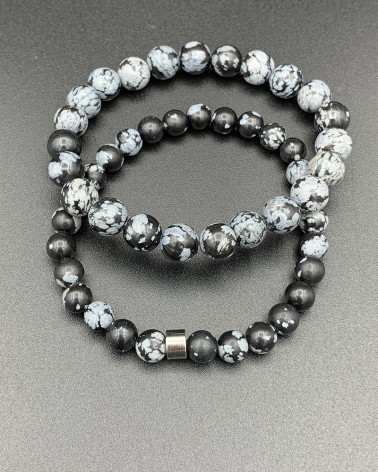 Pánsky náramok vločkový... Cena 58,00 € korálky polodrahokamu vločkový obsidián 6 mm stredný valček strieborný Ag Nakupuj