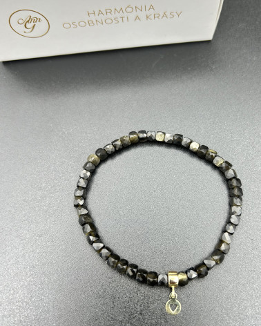 Náramok obsidián so zlatým... Cena 139,00 € korálky brúsený obsidián kocka 2,5 mm x 2,5 mm medzikus prívesok srdiečko zo 14 ct zlata, alebo z rodiovaného striebra malé logo AnnG zo 14... Nakupuj