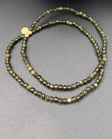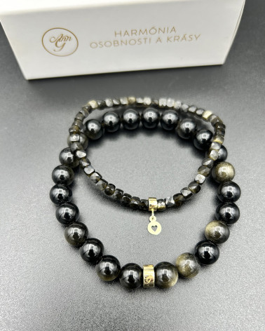 Dvojradový náramok z... Cena 90,00 € brúsené korálky z obsidiánu 3 mm malé logo AnnG z 18 ct zlata Nakupuj