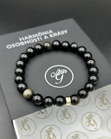 Náramok z obsidiánu so... Cena 99,00 € korálky obsidián 8 mm, kvalita AA veľké logo AnnG z 18 ct zlata ďalšie kovové komponenty z 18 ct zlata Nakupuj