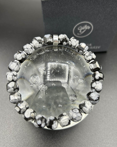 Náramok vločkový obsidián... Cena 33,00 € matné korálky z vločkového obsidiánu 4,5 mm stredový diel valček z rodiovaného striebra Nakupuj