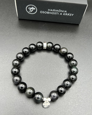 Náramok strieborný obsidián... Cena 68,00 € korálky strieborného obsidiánu 8 mm tredový diel valček Ag veľké logo Ag z rodiovaného striebra Nakupuj