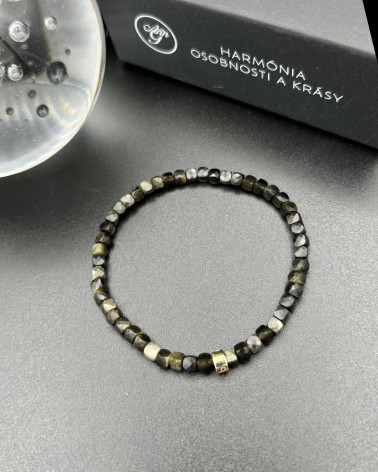 Náramok zlatý obsidián kocky Cena 88,00 € brúsené korálky zlatého obsidiánu kocky stredový diel valček Au zo 14 ct zlata Nakupuj