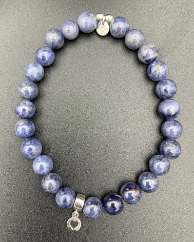 Náramok zo zafíru so... Cena 80,00 € koráliky zafír 8 mm prívesok strieborné srdiečko veľké strieborné logo AnnG Nakupuj