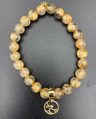 Náramok zo zlatého rutilu... Cena 250,00 € korálky zlatý rutil 8 mm, kvalita A prívesok vtáčik z 10 ct zlata veľké logo AnnG z 18 ct zlata Nakupuj
