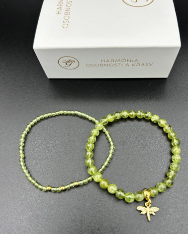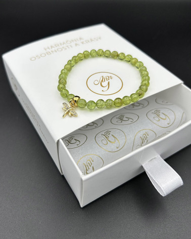 Náramok z olivínu (peridot)... Cena 35,00 € korálky olivín (peridot) 4 mm prívesok pozlátená vážka Nakupuj
