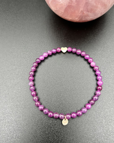 Náramok z pravého rubínu so... Cena 110,00 € korálky z pravého rubínu 4 mm A kvalita stredový diel duté srdce Au rose z ružového 14 ct zlata logo AnnG z Au ružového 14 ct zlata Nakupuj