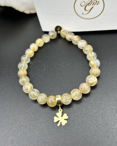 Náramok zo zlatého rutilu... Cena 210,00 € brúsené korálky rodonit 6 mm prívesok štvorlístok z 18 ct zlata veľké logo AnnG z 18 ct zlata Nakupuj