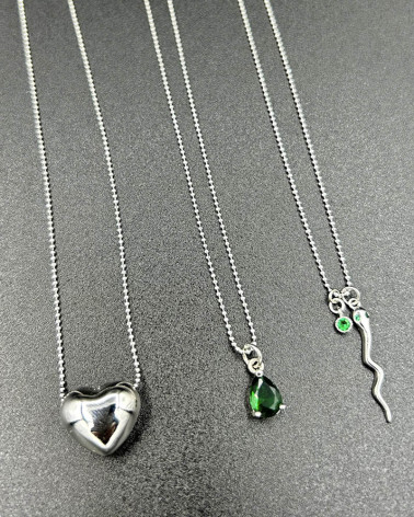 Retiazka s hadíkom rodium Cena 44,00 € rodiovaná retiazka s drobnými guličkami rodiovaný prívesok hadík s očami so zelenými kubickými zirkónmi Nakupuj