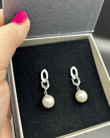 Perlové náušnice s reťazou Cena 59,00 € Shell perly 6-7 mm náušnicové komponenty reťaz rodiované, alebo pozlátené Nakupuj