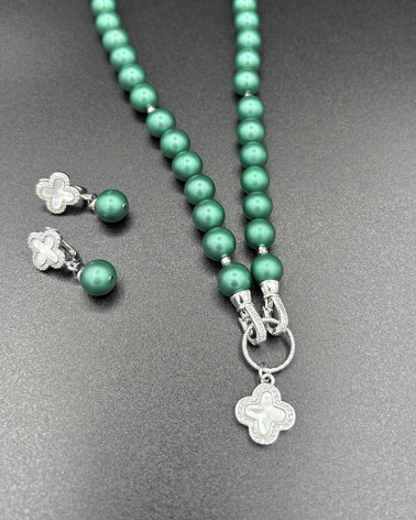 Perlový náhrdelník GREEN so... Cena 66,00 € lastúrové perly Mallorca green 10 mm rodiovaný prívesok štvorlístok s perleťou a kubickými zirkónmi rodiované komponenty Nakupuj