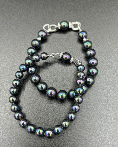 Perlový náramok čierny páv... Cena 36,00 € shell perly black peacoc 5 mm rodiované komponenty s kubickými zirkónmi Nakupuj