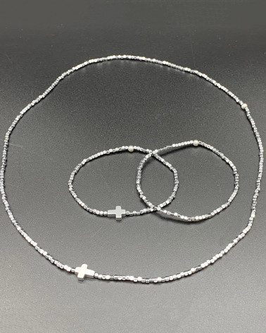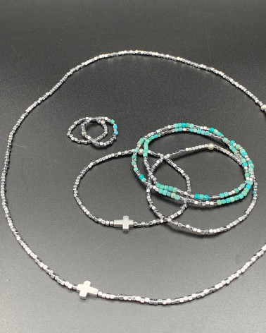 Náhrdelník hematit s krížom Cena 48,00 € korálky hematitu mini kocky korálka hematitu krížik dá sa nosiť aj ako náramok (3 obtočenia) Nakupuj