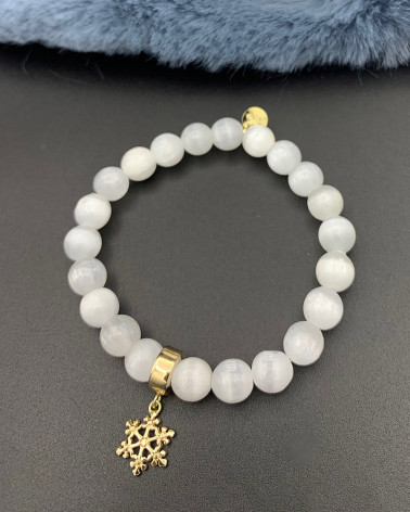 Náramok zo selenitu so... Cena 299,00 € korálky selenit 8 mm prívesok vločka z 18 ct zlata, veľké logo AnnG z 18 ct zlata ďalšie kovové komponenty z 18 ct zlata Nakupuj