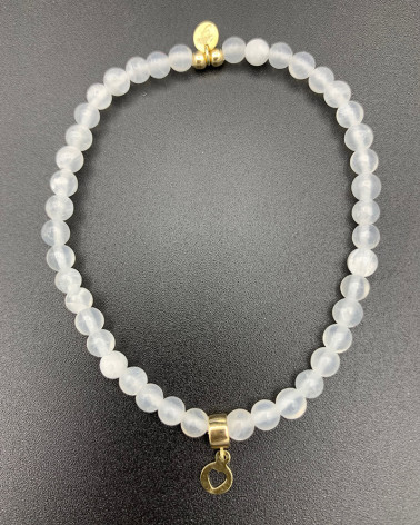Náramok zo selenitu so... Cena 109,00 € korálky selenit 4 mm prívesok malé srdiečko z 18 ct, malé logo AnnG z 18 ct zlata ďalšie kovové komponenty z 18 ct zlata Nakupuj