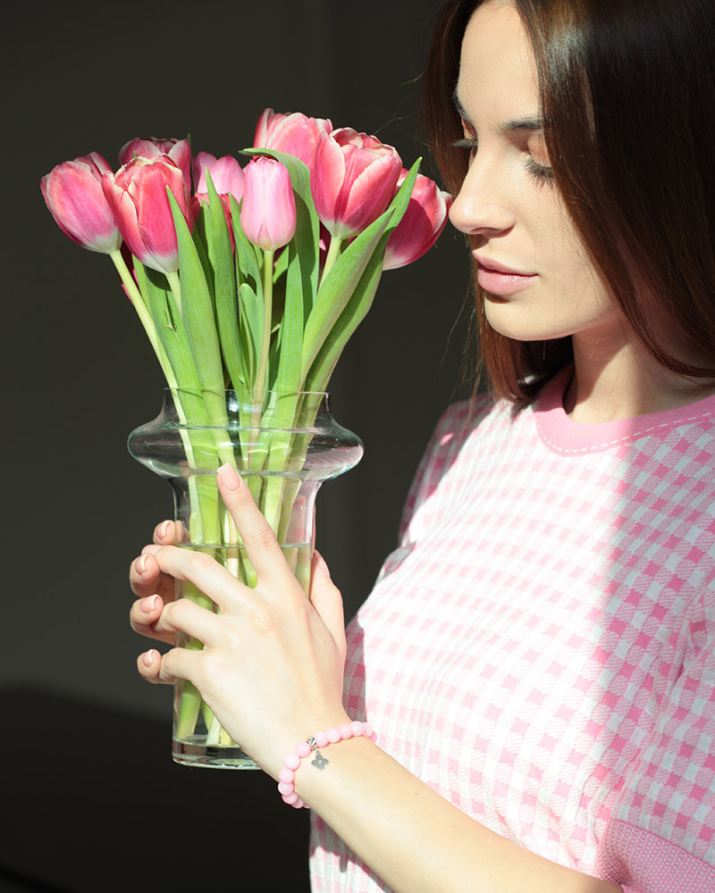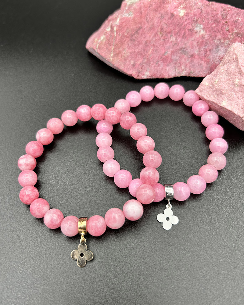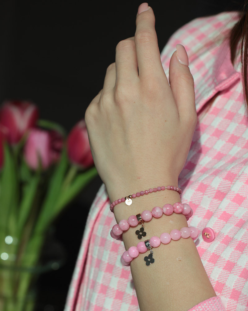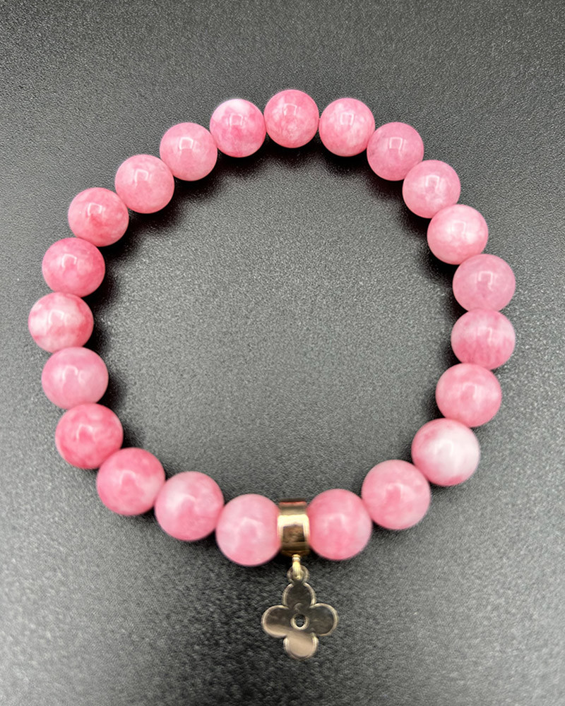 Náramok achát ružový s ružičkou Au
