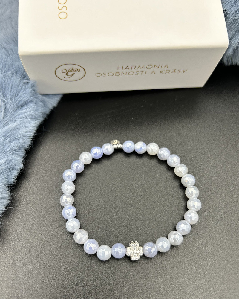Náramok z belasého achátu so štvorlístkom