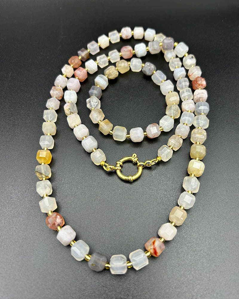 Dvojradový náhrdelník achát sakura kocky