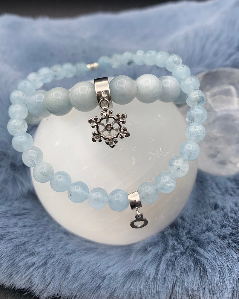 Náramok z akvamarínu so zlatou vločkou