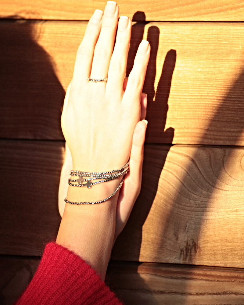(obvod náramku má byť väčší o 0,5 až 1,00 cm ako obvod ruky)