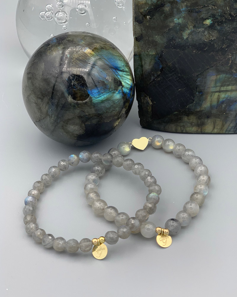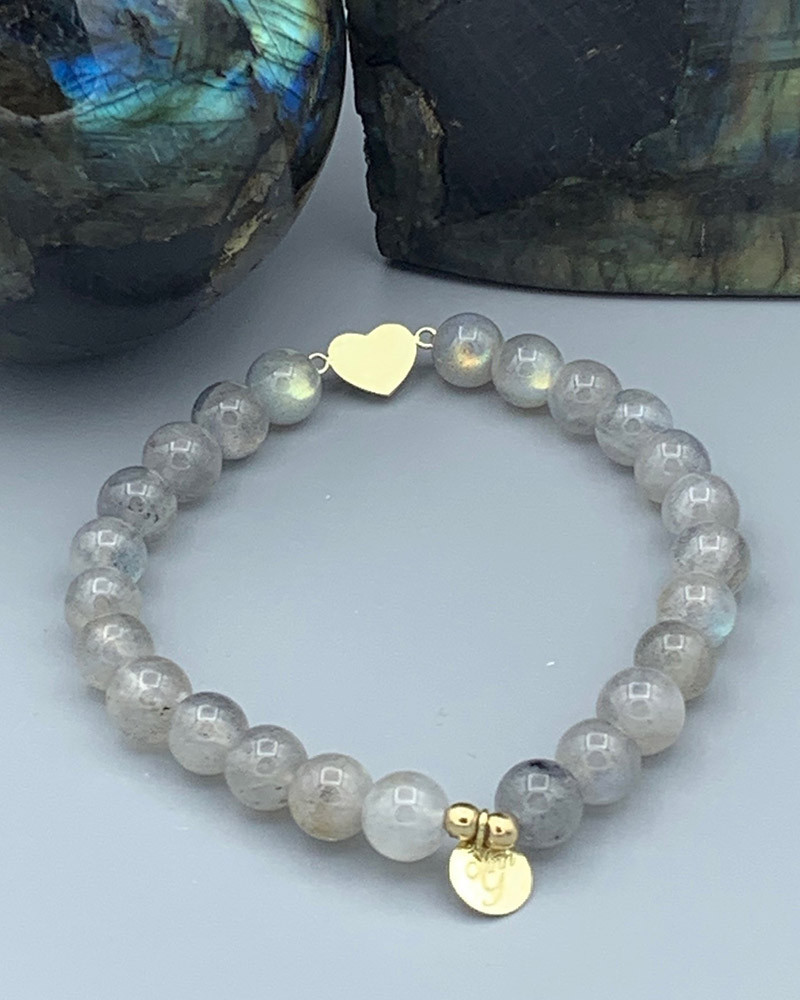 Náramok z labradoritu so zlatým srdcom