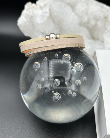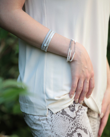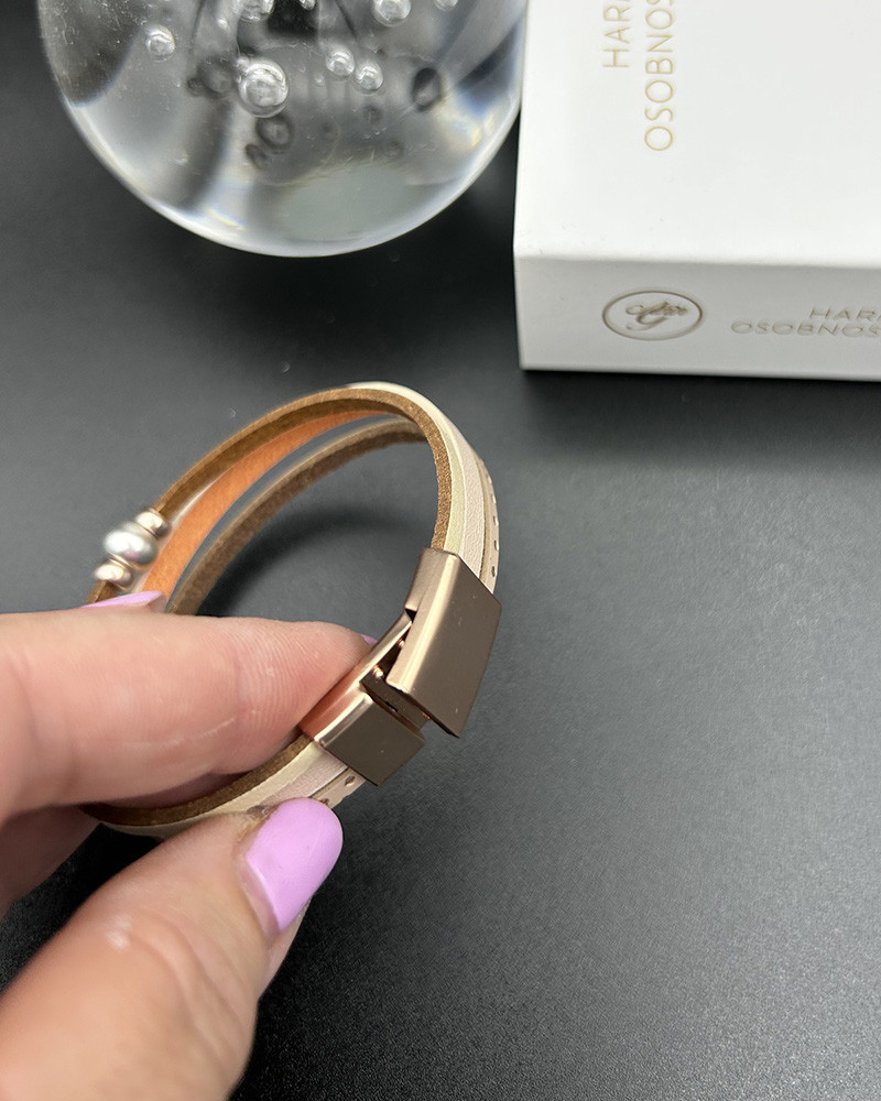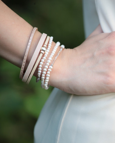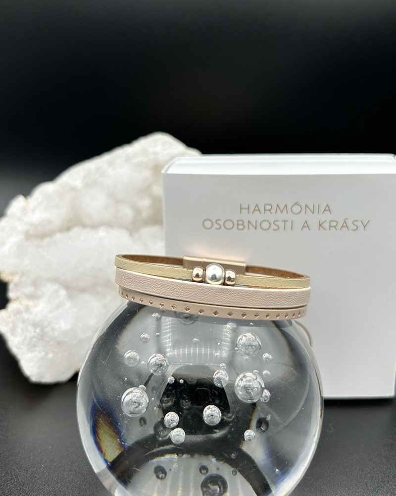 Náramok z ekokože béžový s perlou