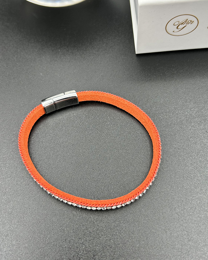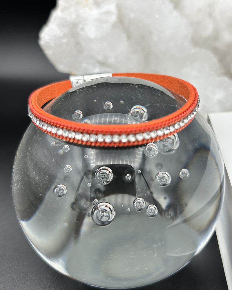 Náramok z ekokože oranžový so zirkónmi