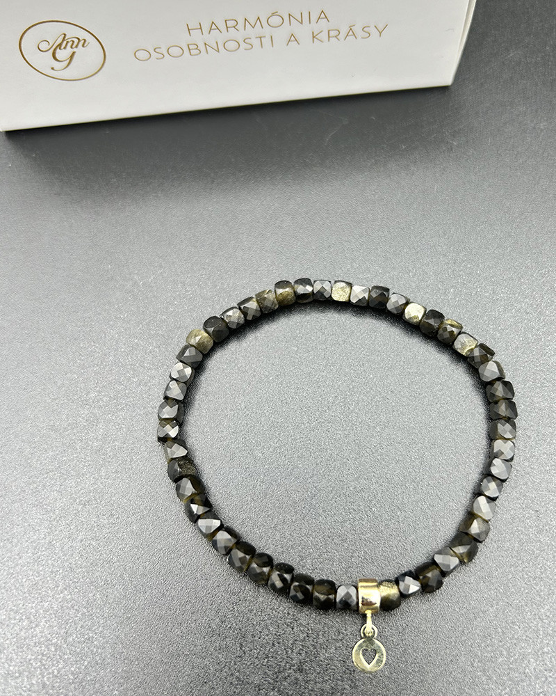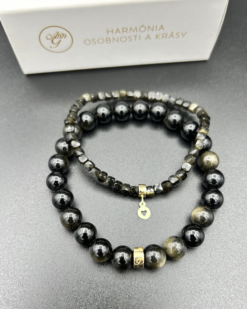 Náramok obsidián so zlatým srdiečkom