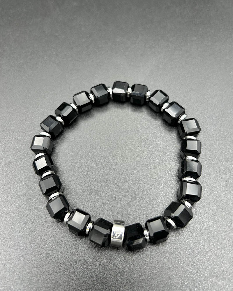 Pánsky náramok ónyx big kocka s predelmi a valčekom Ag